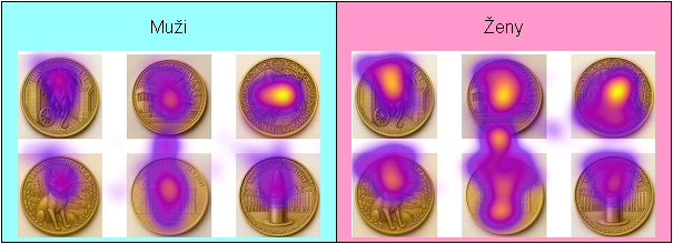 Díky teplotním mapám pohledu se ukázalo, že největší pozornost přitahovala právě mince s Eliškou Rejčkou. Rozdíly se projevily i mezi muži a ženami – zatímco ženy se více soustředily na nápisy, muži vnímali i architektonické detaily, například klášter na minci s Eliškou.